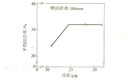 采用對(duì)等離子噴涂氧化鋁涂層電鍍銅,并定量表征涂層內(nèi)扁平粒子間的平均結(jié)合率表明(如圖4),當(dāng)電弧功率較小時(shí),隨電弧功率的增加,粒子間的平均結(jié)合率增加,而當(dāng)功率超過一定值后,結(jié)合率基本不變。研究表明粒子間的結(jié)合主要取決于溫度,由于熔化潛熱使得等離子電弧功率的增加主要是使達(dá)到完全熔化狀態(tài)的陶瓷粒子的數(shù)量增加,而粒子的溫度則難以大幅度提高。因此,陶瓷噴涂層內(nèi)粒子間的結(jié)合率只達(dá)到表觀面積的三分之一左右。