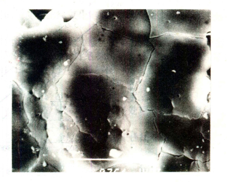 當(dāng)完全熔融的陶瓷噴涂粒子碰撞基體表面,在隨后的快速凝固冷卻過程中,收縮產(chǎn)生的應(yīng)力不能通過金屬材料發(fā)生的塑性變形來釋放,只能通過產(chǎn)生網(wǎng)狀裂紋來釋放。因此,在熱噴涂形成的扁平粒子內(nèi),均會(huì)觀察到如圖5所示的網(wǎng)狀裂紋,裂紋間距一般約為數(shù)微米至十幾微米。這種網(wǎng)狀裂紋與粒子界面存在的大量未結(jié)合界面相互連通,構(gòu)成了陶瓷涂層表面至涂層與基體界面的貫通孔隙。同時(shí),這種網(wǎng)狀裂紋與界面的有限結(jié)合狀態(tài)使陶瓷涂層內(nèi)的貫通孔隙率難以通過材料種類或涂層厚度來有效減少,致使當(dāng)涂層使用環(huán)境存在對(duì)基體具有腐蝕或氧化的介質(zhì)時(shí),僅靠陶瓷涂層不能起到保護(hù)作用。而只能通過釆用合適的金屬結(jié)合過渡層來進(jìn)行保護(hù),或通過適當(dāng)?shù)姆饪准夹g(shù)進(jìn)行處理。