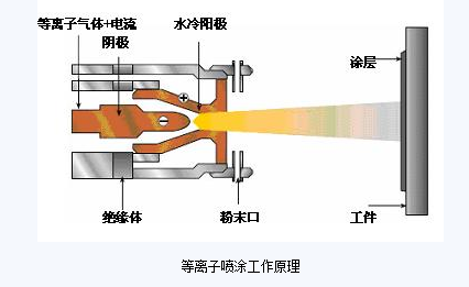 圖(一)等離子噴涂設(shè)備工作原理,可以看出等離子是通過高溫把粉末熔化后噴在工件表面